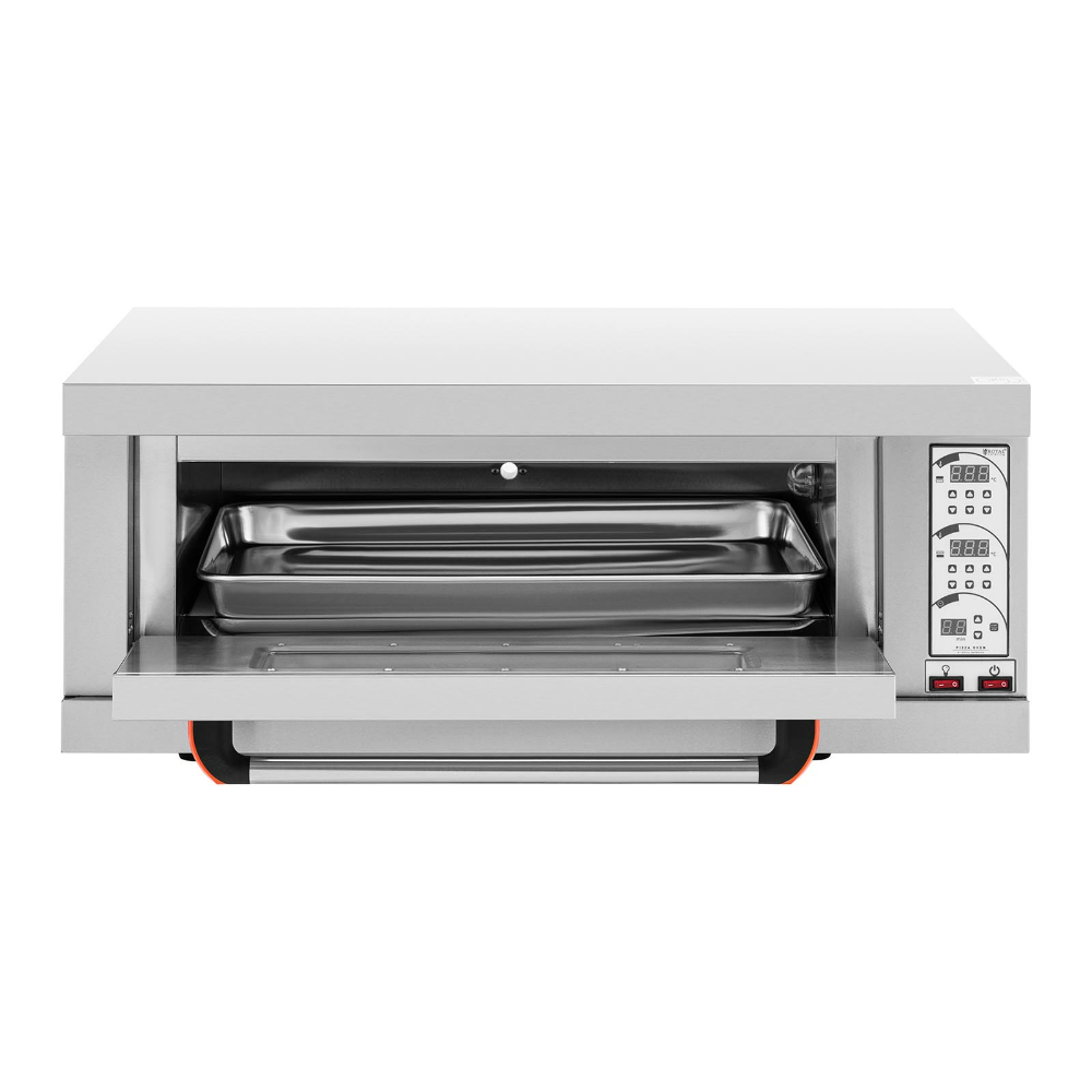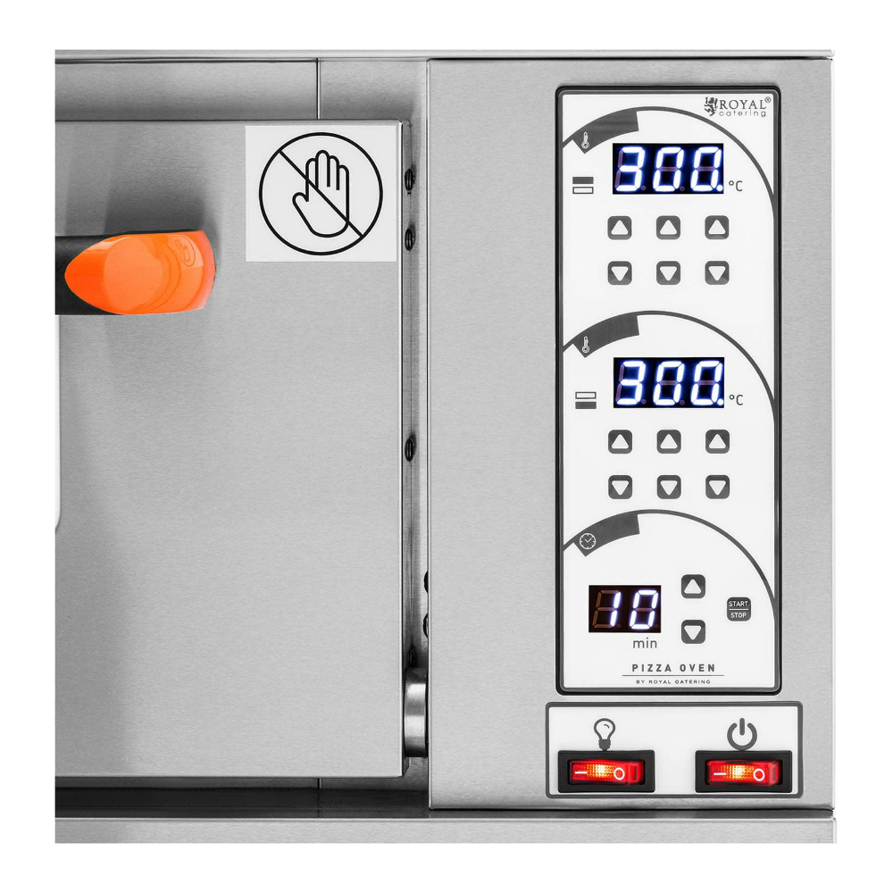 De Royal Catering pizzaoven is van onschatbare waarde voor het bereiden van allerlei soorten pizza's. Ondanks zijn kleine formaat maakt het kooktoestel indruk met zijn state-of-the-art eigenschappen en is het ideaal voor gebruik in pizzeria's, cafés, snackbars en andere horecagelegenheden. Met aparte instellingen voor boven- en onderwarmte biedt de praktische pizzaoven alles wat je nodig hebt voor een knapperige bodem met een sappige topping!