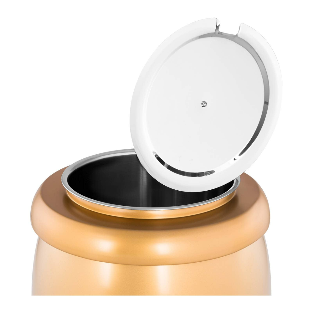 Le boitier, la cuve amovible de 10 l et le couvercle de cette soupière pro sont faits d’acier inoxydable. Ce choix de matériaux favorise une hygiène irréprochable et un nettoyage aisé, en plus de conférer une solidité, une résistance à la corrosion et une durée de vie élevées à l’appareil. Ainsi la soupière électrique conserve l’allure impeccable des premiers jours et elle continue de faire paraitre vos plats appétissants même après plusieurs années d’utilisation. Son couvercle avec poignée isolante Cool Touch est rabattable et peut basculer vers l’arrière ou être posé sur le bord de la soupière pour faciliter le service ou obtenir un effet décoratif.