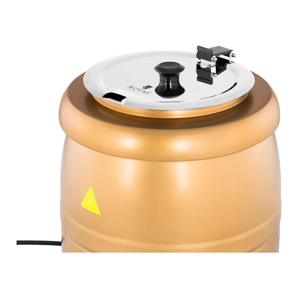 Cette soupière électrique est conçue pour maintenir soupes, ragouts et sauces à la température parfaite des heures durant tout en les présentant de façon avantageuse. Dotée d’un boitier massif et d’une cuve amovible en inox, elle se fond sans difficulté dans les restaurants. Grâce à ses caractéristiques pratiques, ce produit de la gamme de matériel de restauration Royal Catering convient également aux buffets et aux évènements privés, lors desquels il permet aux services de traiteurs et aux particuliers de mettre les plats à la disposition des convives en toute commodité.